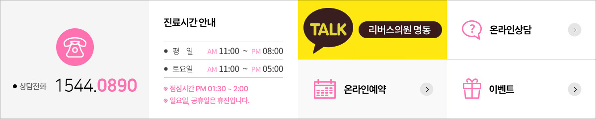 리버스클리닉 명동점은 친절함과 상냥함으로 언제나 기본을 지키며 고객님 앞에 서겠습니다.